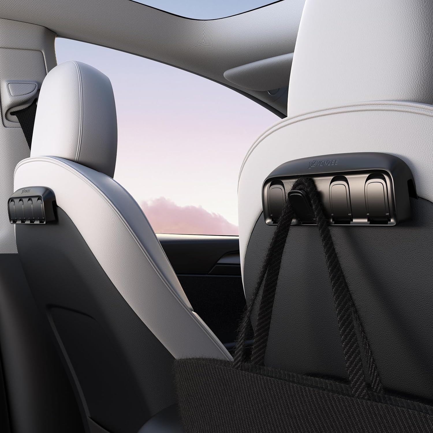 【One-Step Installation】Installing the car seat hooks is incredibly easy - just insert them into the gap between the Tesla seats. They're very secure and won't slip or damage your car's interior.