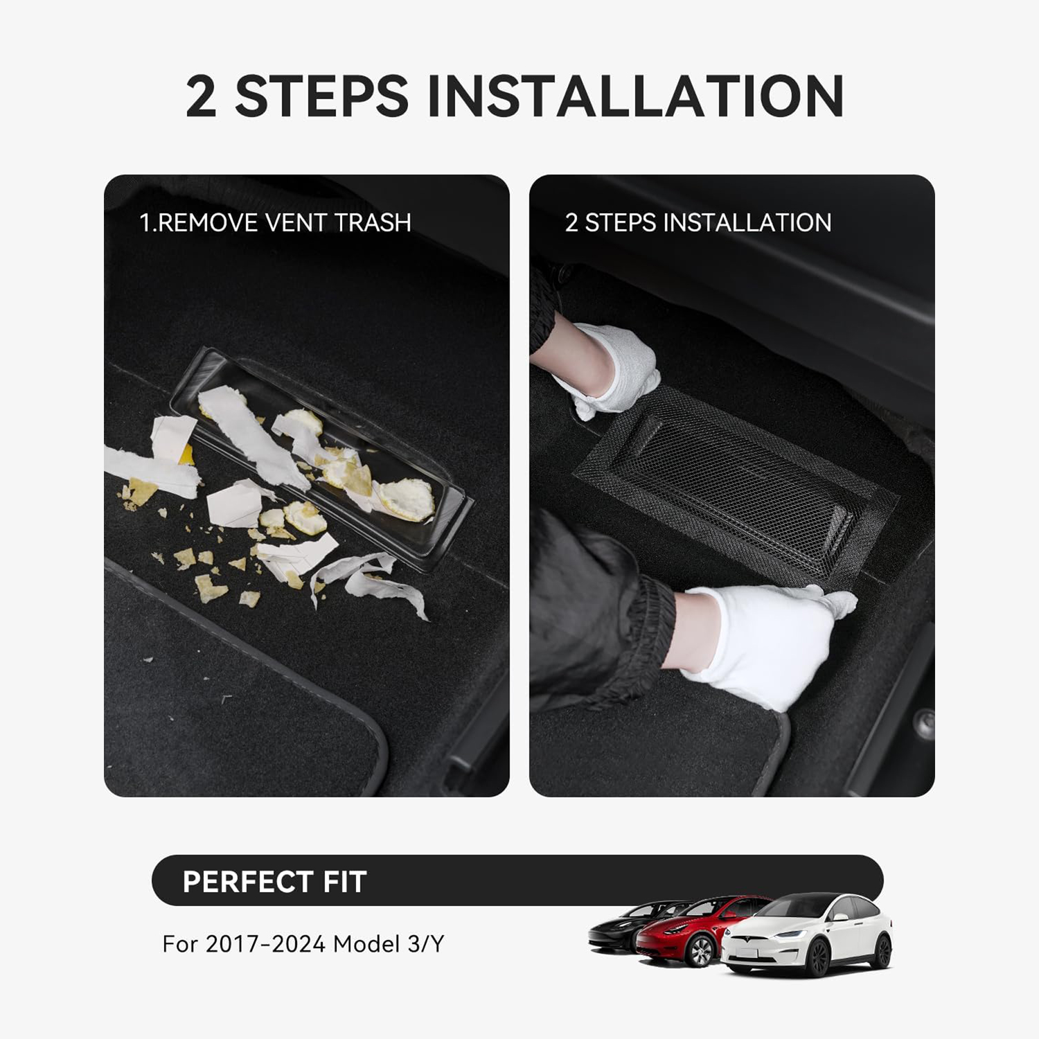 【Custom Fit for Tesla Model 3 & Model Y (2017-2024)】Specifically designed to seamlessly fit the rear seat air vents of Tesla Model 3 and Model Y, ensuring full coverage and protection against dust, debris, and small objects.