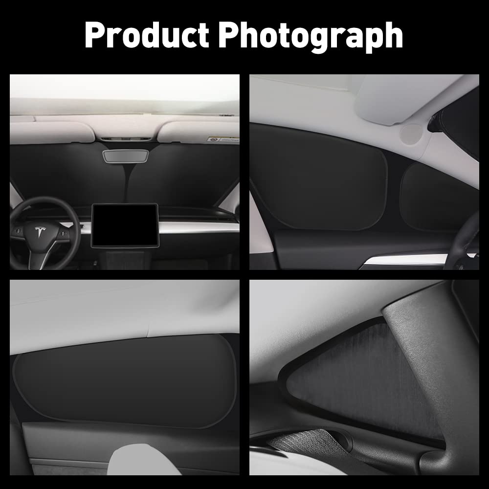 - YONZEE Sunshade set for Tesla model Y 2019-2023. Full-vehicle custom 8-pieces sun shade kit, including front & rear windshield, side windows and triangular windows. Uses the original car 3D scan data mold opening technology, highly precision model design, 100% fit original car windows, it can completely cover your car without trimming, and is the best choice for Tesla model Y accessories.